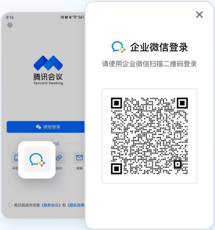 ◎ 登录企业微信后,通过企业微信扫码即可登录。