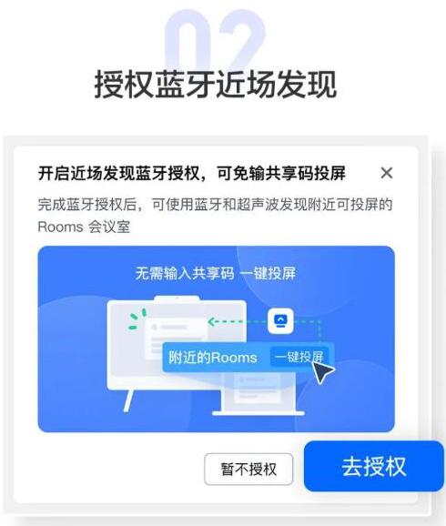 现在,为了让会议投屏更便捷和更丝滑,融合了超声波、蓝牙发现的腾讯会议Rooms近场发现功能,可以让您在腾讯会议客户端授权近场发现功能后,点击【共享屏幕】即可自动识别到身边会议室的Rooms设备,点击需要投屏的设备就可直接进行投屏共享,无需再走到屏幕前或问前排同事屏幕投屏码也能轻松投屏了!