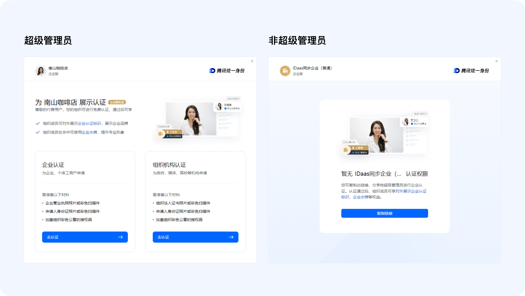 通过认证后的企业,所属该企业的成员在资料卡、会中成员列表、水牌向他人展示所属的企业信息、职位信息等。会中展示企业认证信息,员工还是访客清晰可辨。不仅提升企业成员开会专业形象,并且防止访客冒充公司成员。
